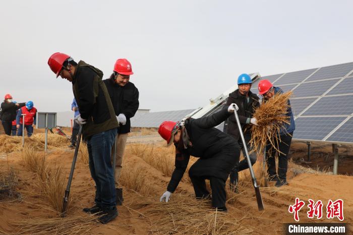 在寧夏騰格里沙漠新能源基地,臺商臺青們了解到在沙漠上建設(shè)光伏發(fā)電可以減弱沙丘流動、減少沙漠水分蒸發(fā)量,光伏板組件下還可以扎半隱蔽式麥草方格,播撒沙蒿、沙米等沙生植物草籽固沙,并培育西紅柿、辣椒等農(nóng)作物,實(shí)現(xiàn)“板上發(fā)電、板間種植、板下修復(fù)”?!斑@真是一舉三得,沙漠光伏項(xiàng)目為經(jīng)濟(jì)社會發(fā)展插上了騰飛的‘綠色翅膀’。”臺青張耀霖說。