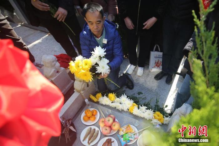 11月12日,劉德文在已經(jīng)安葬的陳有謙夫婦墓前祭拜。中新社發(fā) 張孝鵬 攝