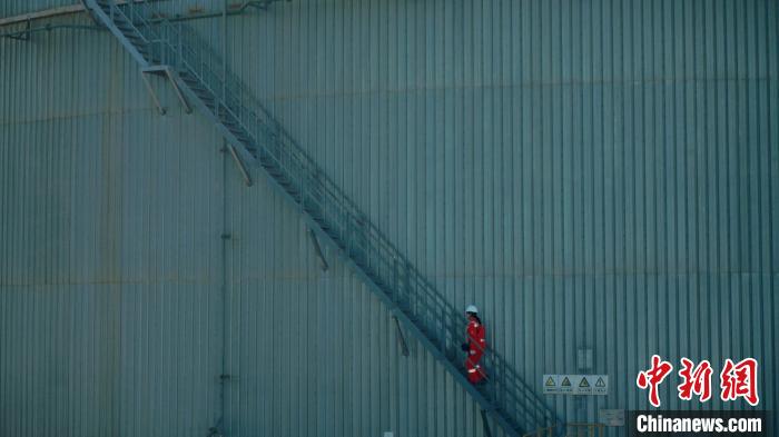 潘雪兮上罐頂進(jìn)行巡檢。李明非攝