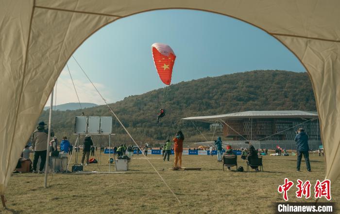 11月13日,參賽選手在2023年滑翔傘定點世界杯總決賽現(xiàn)場。張詩秋 攝