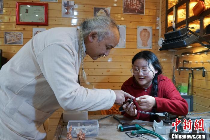 青海省西寧市湟中區(qū)魯沙爾鎮(zhèn)陽(yáng)坡村以銀銅器制作聞名。該村村民金維達(dá)從事銀銅器加工制作已有35年,是國(guó)家級(jí)非物質(zhì)文化遺產(chǎn)項(xiàng)目“銀銅器制作及鎏金技藝”區(qū)級(jí)傳承人。他的女兒金廣芝從小耳濡目染,大學(xué)畢業(yè)后返鄉(xiāng)跟隨父親學(xué)習(xí)手藝。金廣芝13日說(shuō):“回家不僅能陪伴家人,也能協(xié)助父親,一起將家鄉(xiāng)的非遺技藝不斷創(chuàng)新,讓更多年輕人認(rèn)識(shí)、了解、喜歡。”
