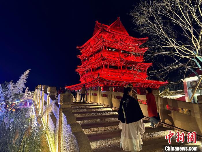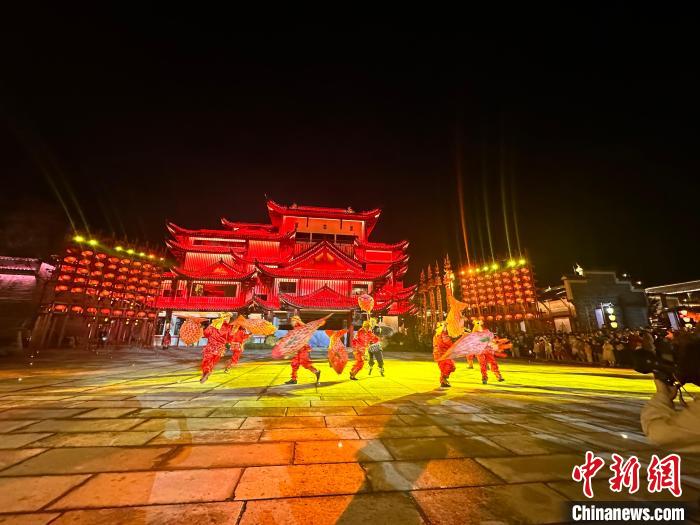 入夜,福建南平市建陽(yáng)區(qū)噴火、古戲等系列古裝“非遺”表演吸引游人。建陽(yáng)區(qū)依托千年古縣文化特色,整合復(fù)古場(chǎng)景、歷史人文、民俗風(fēng)情、文創(chuàng)商業(yè),打造宋代文化風(fēng)情主題園區(qū)“武夷夢(mèng)華錄”?!拔湟膲?mèng)華錄”主題園區(qū)擁有100多棟仿古建筑,亭臺(tái)水榭一步一景,再現(xiàn)兩宋時(shí)期建州盛景。