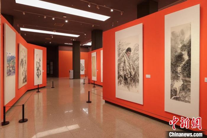 “萬年上山 詩畫浦江”浦江縣書畫作品晉京展現(xiàn)場(chǎng)?!≈袊?guó)美術(shù)館供圖