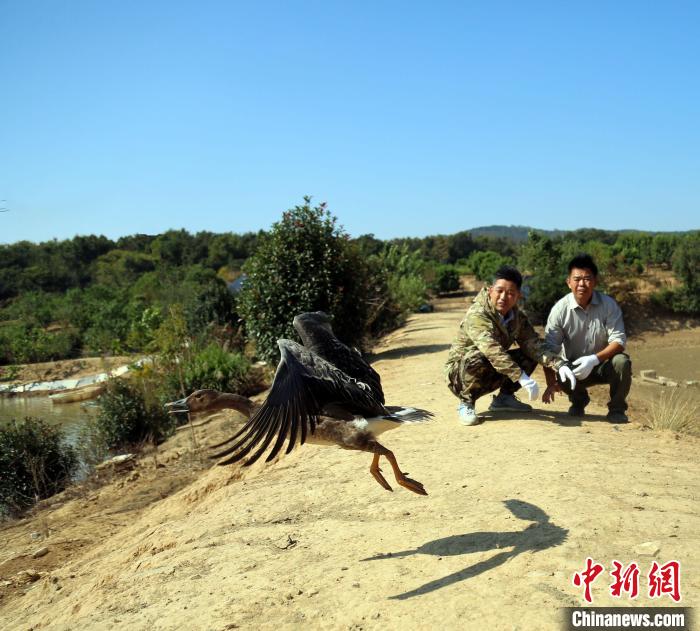 湖口縣長嶺村村民沈紅衛(wèi)近日在自家水塘邊發(fā)現(xiàn)一只受傷候鳥,經(jīng)余錦平趕到后確認(rèn),該候鳥為豆雁,腿部受輕微傷?!斑@位村民第一時(shí)間跟我們聯(lián)系,并給它喂了稻谷、蔬菜,經(jīng)過數(shù)日的細(xì)心照料,現(xiàn)已基本痊愈,我就建議放飛,因?yàn)樵谧匀画h(huán)境和鳥群中更適合它康復(fù)?!?/p>