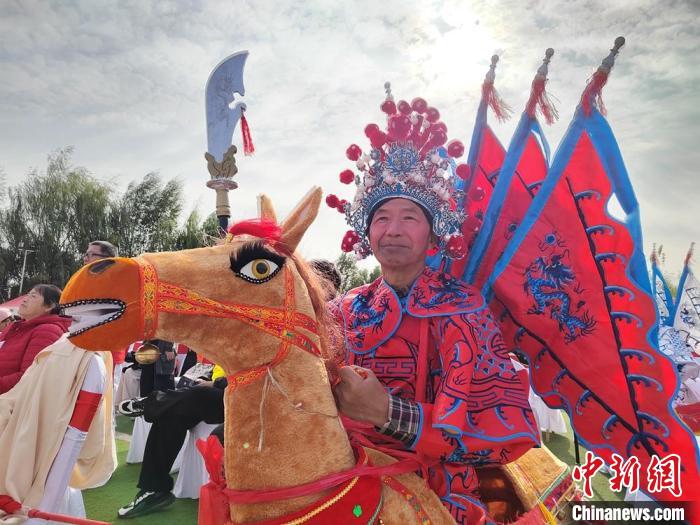鑼鼓聲中,古代鎧甲著裝的4位“英雄”展演“三英戰(zhàn)呂布”,刀光劍影,戰(zhàn)旗飄飄,現(xiàn)場(chǎng)觀眾叫好聲不斷。南京市溧水區(qū)廣場(chǎng)健身舞協(xié)會(huì)負(fù)責(zé)人何白玉介紹,這是南京市選送的非遺類展演項(xiàng)目“馬燈”。由于展演規(guī)則限制,原來(lái)是23人的表演項(xiàng)目,今天只能安排8人參加現(xiàn)場(chǎng)展演,4個(gè)馬夫牽著4匹“戰(zhàn)馬”,黃、紅、黑色“戰(zhàn)馬”分別代表劉備、關(guān)羽、張飛,白色“戰(zhàn)馬”則代表呂布。