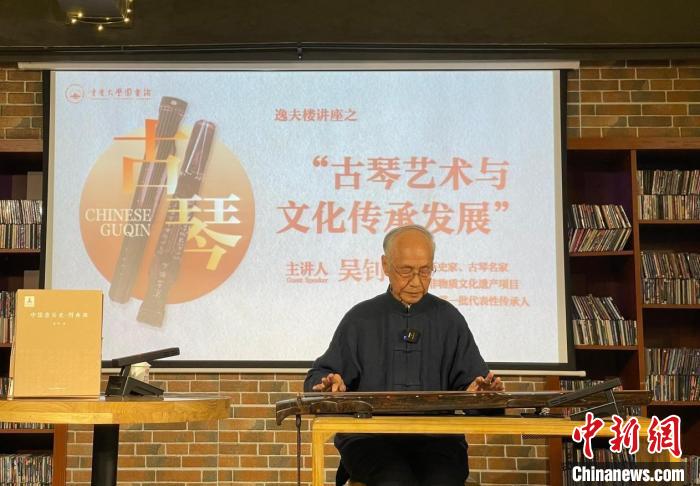 中新網(wǎng)重慶11月15日電(劉心羽)“正確傳承古琴文化,要以守正為前提去創(chuàng)新?!?4日,88歲的國家級(jí)非物質(zhì)文化遺產(chǎn)項(xiàng)目古琴藝術(shù)代表性傳承人、音樂史家吳釗在重慶大學(xué)開講《古琴藝術(shù)與文化傳承發(fā)展》,并現(xiàn)場用不同方法演奏古琴曲《良宵引》,對比分析古琴獨(dú)有的吟猱技法及其傳承要旨。