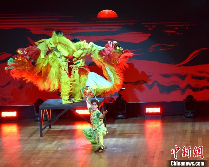 巴西留學(xué)生馬飛龍(前)舞獅表演《獅躍荊楚》劇照。記者林春茵 攝