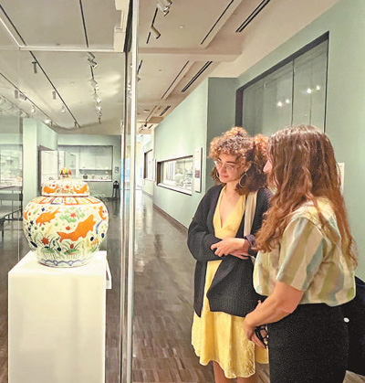 美國舊金山亞洲藝術博物館近期舉辦中國瓷器展覽。圖為當?shù)貢r間11月13日,參觀者在欣賞藝術品。本報記者 張博嵐攝