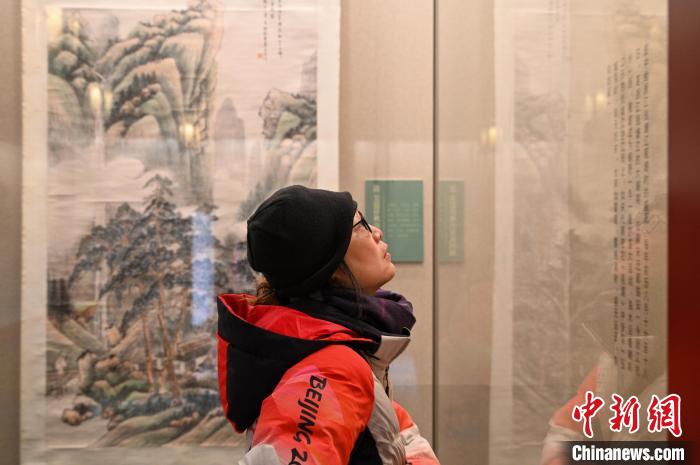 11月16日,“千峰翠色——院藏青綠山水繪畫展”在沈陽故宮師善齋、協(xié)中齋開展,29件(套)院藏青綠山水繪畫文物通過“濃妝淡抹總相宜”“游歷青山綠水間”兩個單元展現(xiàn)我國“綠水青山”的氣象萬千。圖為觀眾在觀看展覽。