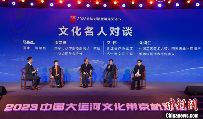 圖為2023中國(guó)大運(yùn)河文化帶京杭對(duì)話(huà)暨北京(國(guó)際)運(yùn)河文化節(jié)的文化名人對(duì)談環(huán)節(jié)。記者 韓海丹 攝
