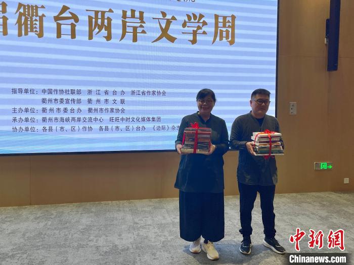 兩岸作家互贈(zèng)書籍。張斌 攝