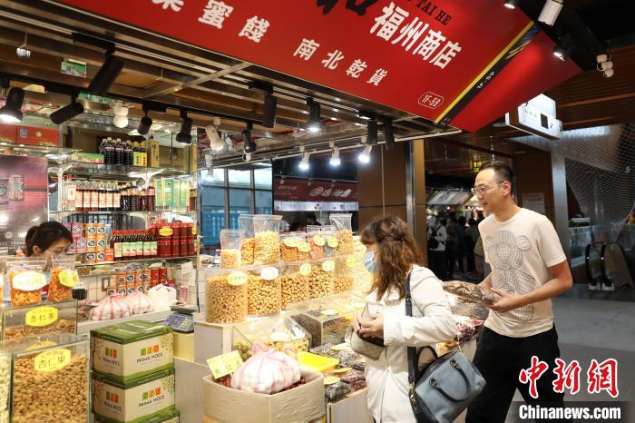 福泰和福州商店老板陳由申忙著向顧客介紹香菇、干貝等南北干貨。他對記者表示,爺爺來自福州,早年賣福州魚丸、燕皮、面線等家鄉(xiāng)食品;自己接班以來,增加了堅果等更多種類商品,期待生意蒸蒸日上。