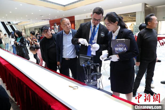 馬克西姆現(xiàn)場向王業(yè)樓(左)頒發(fā)認(rèn)證證書?!√乒夥?攝