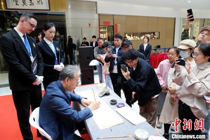 馬克西姆現(xiàn)場向王業(yè)樓頒發(fā)認(rèn)證證書。逾百位文藝界人士、市民群眾共同見證。