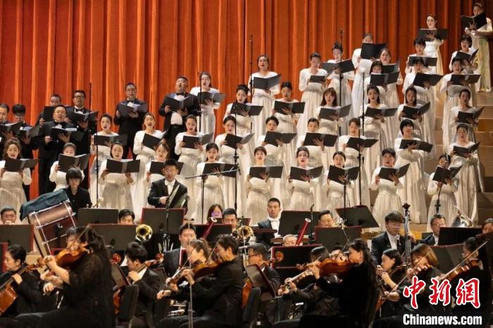“綠葉對(duì)根的情誼——谷建芬作品交響合唱音樂會(huì)”現(xiàn)場(chǎng)?!≈袊?guó)東方演藝集團(tuán)供圖