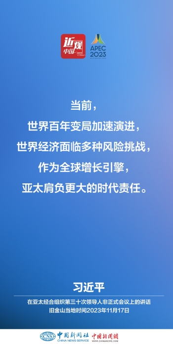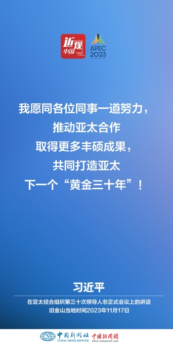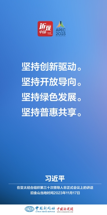 當(dāng)?shù)貢r(shí)間11月17日上午,亞太經(jīng)合組織第三十次領(lǐng)導(dǎo)人非正式會議在美國舊金山莫斯科尼中心舉行。中國國家主席習(xí)近平出席會議并發(fā)表題為《堅(jiān)守初心 團(tuán)結(jié)合作 攜手共促亞太高質(zhì)量增長》的重要講話。他指出——