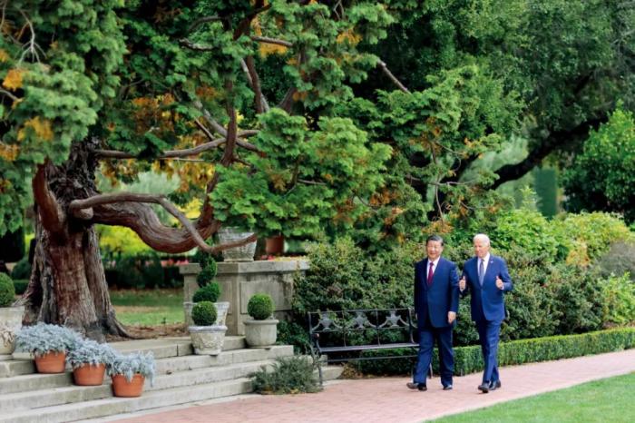 會談意猶未盡,拜登為習(xí)近平舉行午宴,兩國元首就共同關(guān)心的巴以沖突等國際和地區(qū)問題交換意見。拜登還邀請習(xí)近平一道在斐洛里莊園里散步,并將習(xí)近平送到上車處道別。