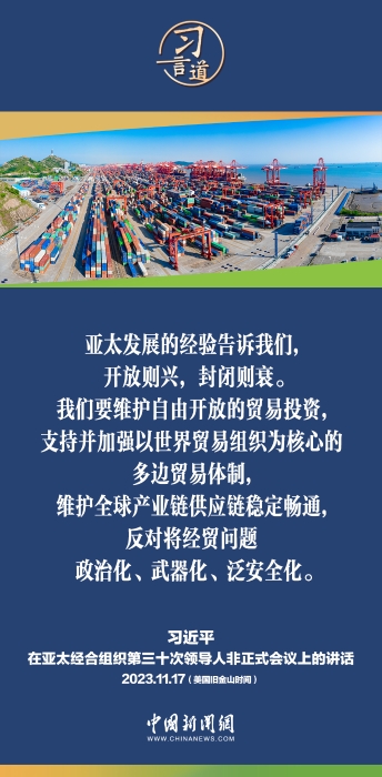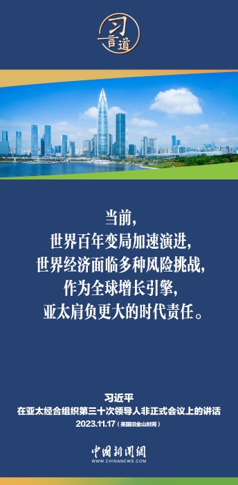 當(dāng)?shù)貢r(shí)間11月17日上午,中國(guó)國(guó)家主席習(xí)近平出席亞太經(jīng)合組織第三十次領(lǐng)導(dǎo)人非正式會(huì)議并發(fā)表重要講話。習(xí)近平指出——