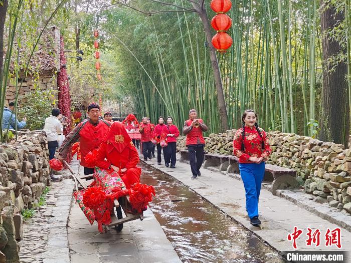 沂南縣竹泉村傳統(tǒng)婚嫁民俗表演。王采怡 攝