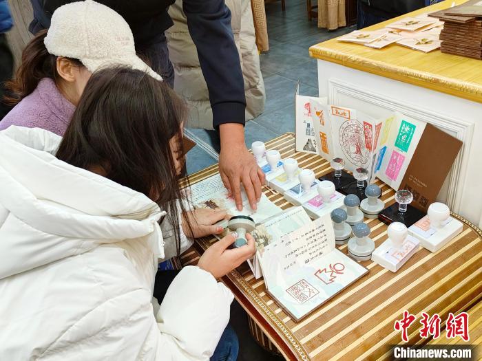 媒體記者在莒國古城內(nèi)體驗集章打卡。王采怡 攝