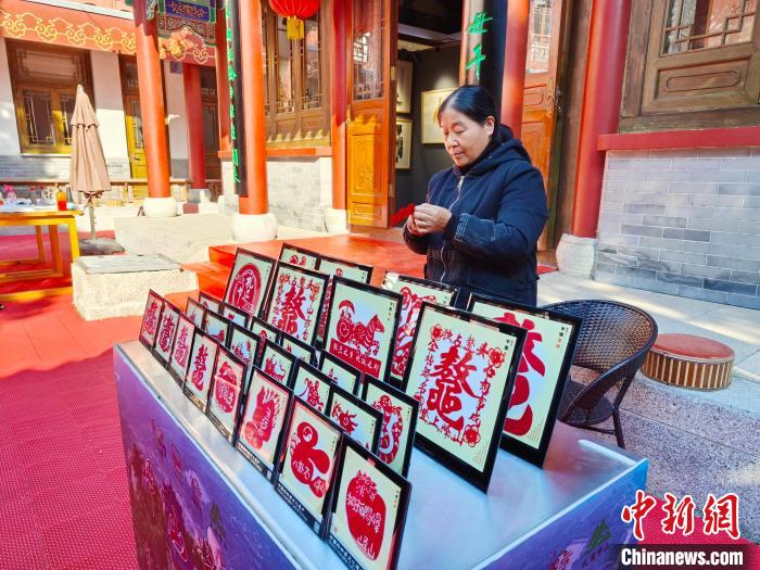 嶧山風景區(qū)內(nèi)的鄒城剪紙非遺展臺。王采怡 攝
