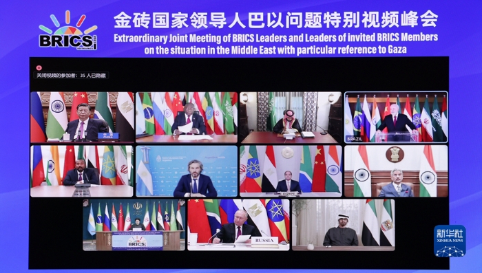 如今,加沙地區(qū)的沖突已持續(xù)一個多月,造成大量平民傷亡和人道主義災(zāi)難,并出現(xiàn)擴(kuò)大外溢趨勢。作為新興市場國家和發(fā)展中國家合作的重要平臺,金磚國家將如何發(fā)聲是各方關(guān)注重點。金磚擴(kuò)員后首場領(lǐng)導(dǎo)人會晤聚焦巴以沖突,既表明當(dāng)前沖突已超越局部范圍,對全球地緣政治安全的影響不容小覷,也說明金磚機(jī)制正在探索應(yīng)對國際熱點的合作方式,有望為全球治理提供新的解決路徑。