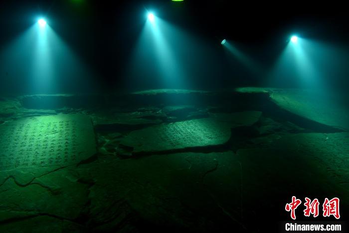 2017年在重慶白鶴梁水下博物館拍攝的白鶴梁題刻。(重慶白鶴梁水下博物館供圖)
