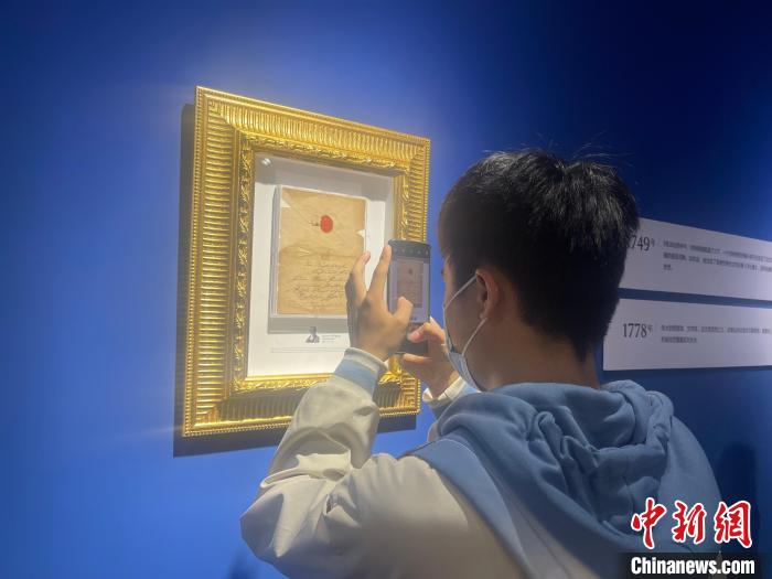 11月24日,策展人、世界名人手稿研究學(xué)者邱見接受采訪時(shí)表示,此次共展出24件世界文豪的書信手稿。其中,德國(guó)著名思想家、作家歌德致瑪麗亞·保洛娜公主的親筆便條,系首次展出。