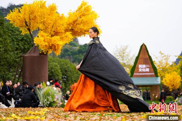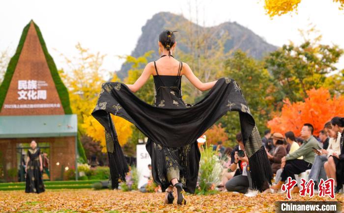 2023海上絲綢之路紡織服裝時(shí)尚大會“守民族時(shí)尚碧海 護(hù)絲路共生之約”海絲金綢展示。楊宗盛 攝