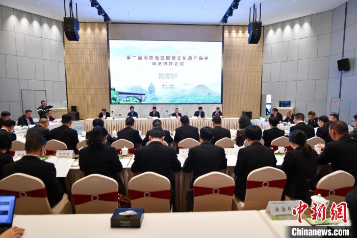 廊橋被譽(yù)為橋梁的“活化石”,具有較高的人文價(jià)值、歷史價(jià)值。據(jù)統(tǒng)計(jì),福建的壽寧、周寧、屏南、政和以及浙江的泰順、慶元、景寧等地,保存各式木拱古廊橋多達(dá)100多座,構(gòu)成中國(guó)廊橋密度最高、環(huán)境最優(yōu)美的閩浙廊橋帶。2012年閩浙兩地22座廊橋被國(guó)家文物局列入中國(guó)世界文化遺產(chǎn)預(yù)備名錄。為推進(jìn)廊橋文化遺產(chǎn)司法保護(hù)工作,閩浙兩省四地法院加大對(duì)廊橋文化遺產(chǎn)的司法保護(hù)協(xié)作力度,于2020年召開(kāi)首屆廊橋司法協(xié)作會(huì)。此次第二屆會(huì)議,旨在進(jìn)一步推動(dòng)閩浙兩地法院完善廊橋文化遺存常態(tài)化保護(hù)模式,助力廊橋文化申報(bào)世界文化遺產(chǎn)。