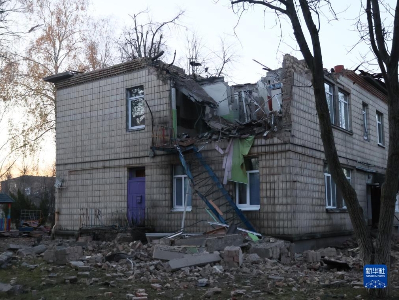 11月25日,在烏克蘭基輔市,一棟建筑屋頂被無人機(jī)碎片擊中。