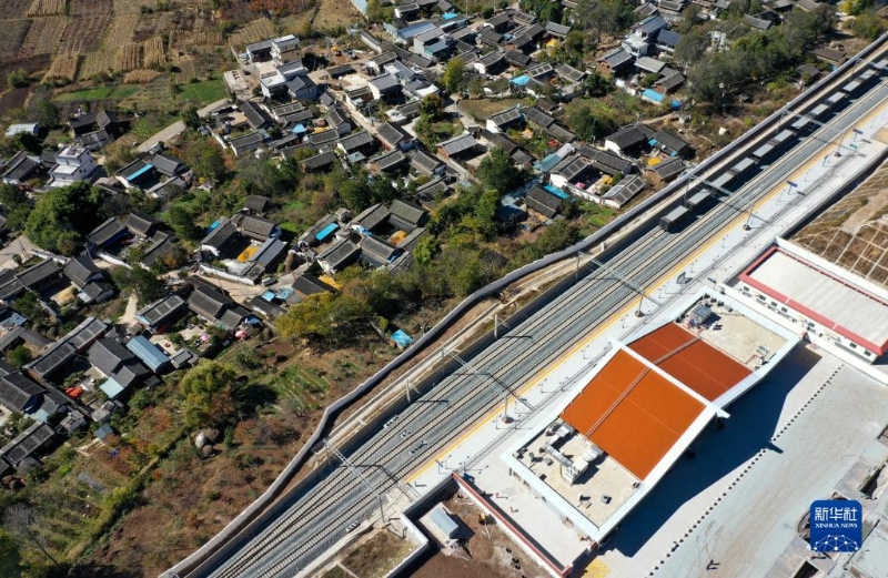11月25日在麗江市境內(nèi)拍攝的即將開通的麗香鐵路(無(wú)人機(jī)照片)。