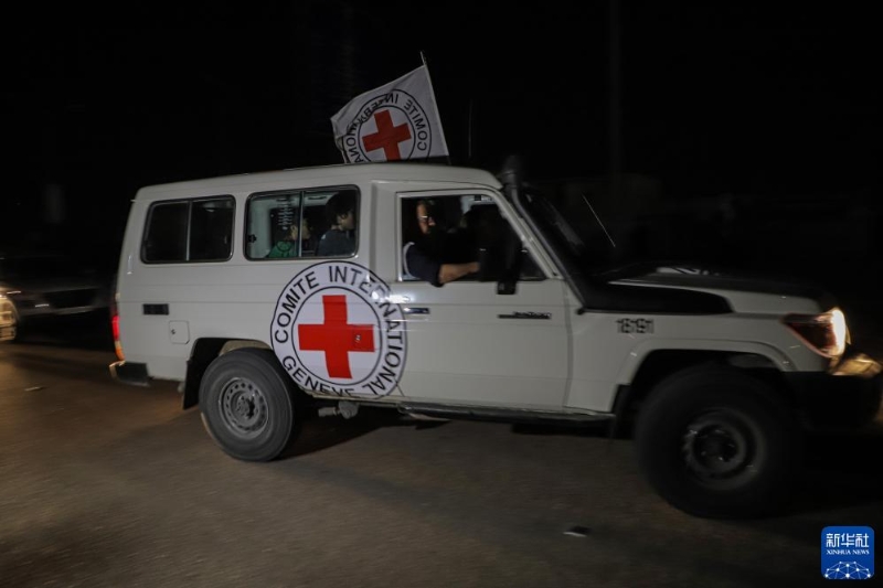 11月25日,紅十字國際委員會工作人員將被釋放人員送往加沙地帶南部拉法口岸。新華社發(fā)(里澤克·阿卜杜勒賈瓦德攝)