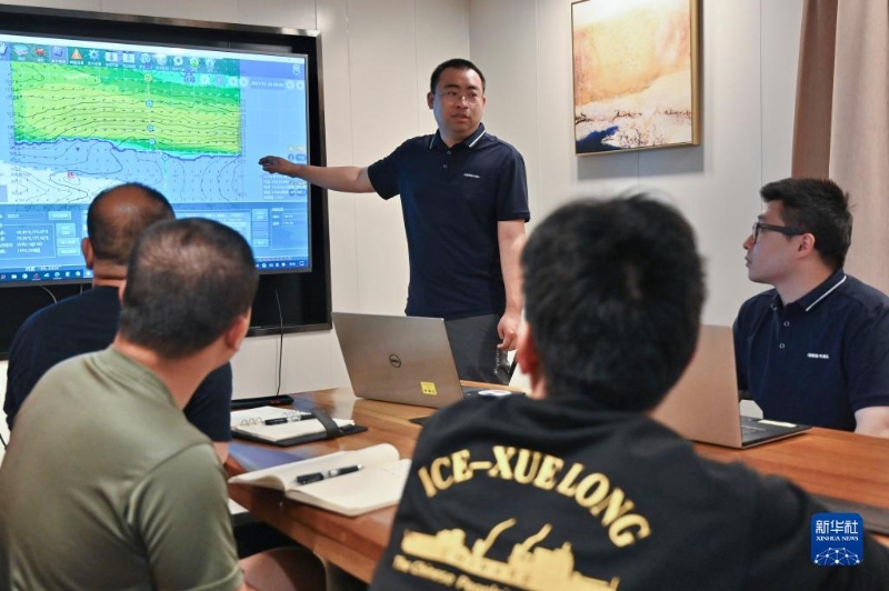 11月23日,“雪龍2”號(hào)氣象保障員李競(jìng)時(shí)介紹西風(fēng)帶氣象情況。