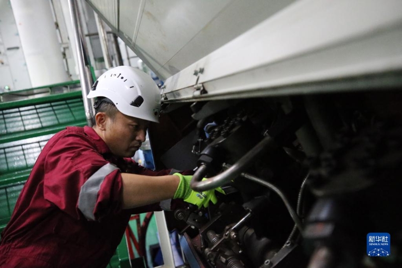 11月26日,“雪龍2”號(hào)機(jī)工長(zhǎng)湯建國(guó)在檢查設(shè)備。