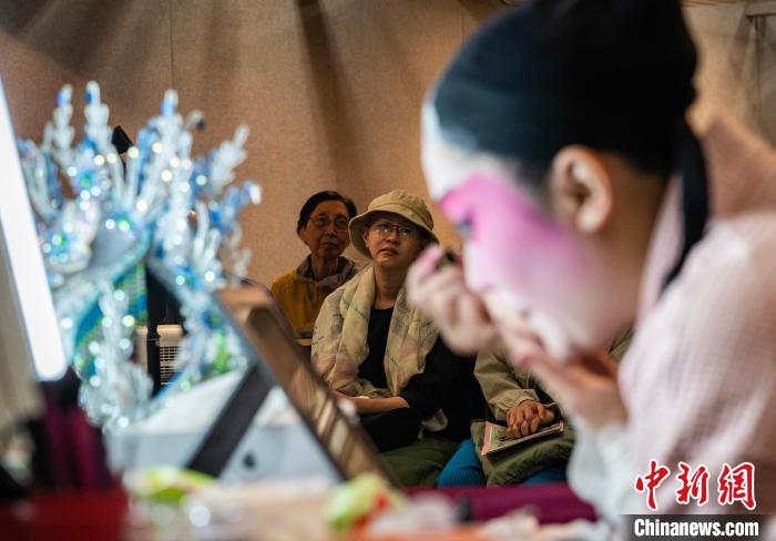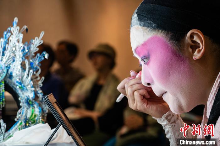 圖為旦角演員完成化妝穿戴后向市民展示。 中新網(wǎng)記者 侯宇 攝