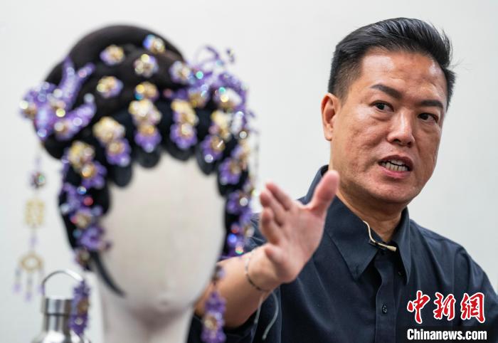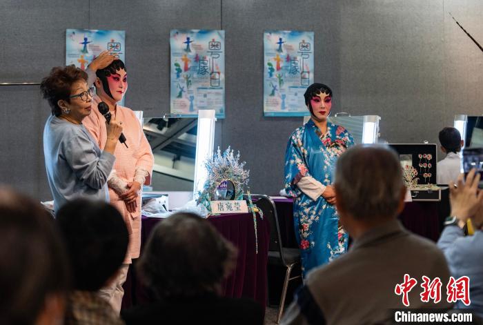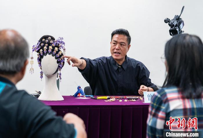 圖為講師為市民介紹粵劇花旦頭飾“繞花”的制作方法。中新網(wǎng)記者 侯宇 攝