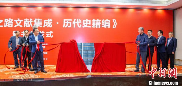 26日,與會領導與專家、學者為《海上絲綢之路文獻集成·歷代史籍編》揭幕。林晨歌 攝