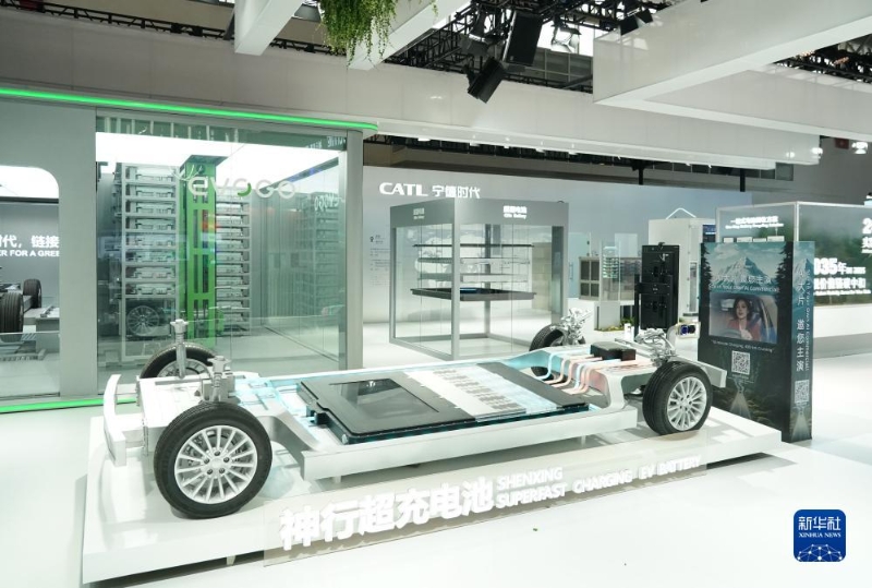 這是11月26日在中國國際供應(yīng)鏈促進(jìn)博覽會(huì)智能汽車鏈展區(qū)拍攝的寧德時(shí)代展位。新華社記者 任超 攝