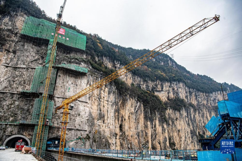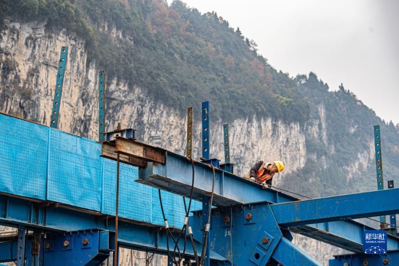 11月26日,在位于重慶市酉陽(yáng)土家族苗族自治縣龔灘鎮(zhèn)的阿蓬江大橋施工建設(shè)現(xiàn)場(chǎng),工人正在現(xiàn)場(chǎng)作業(yè)。