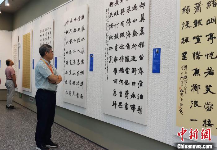 圖為2023年“文化北海”建設(shè)活動周內(nèi)容之一——中國書法蘭亭獎獲獎名家作品(北海)邀請展。記者 馮抒敏 攝