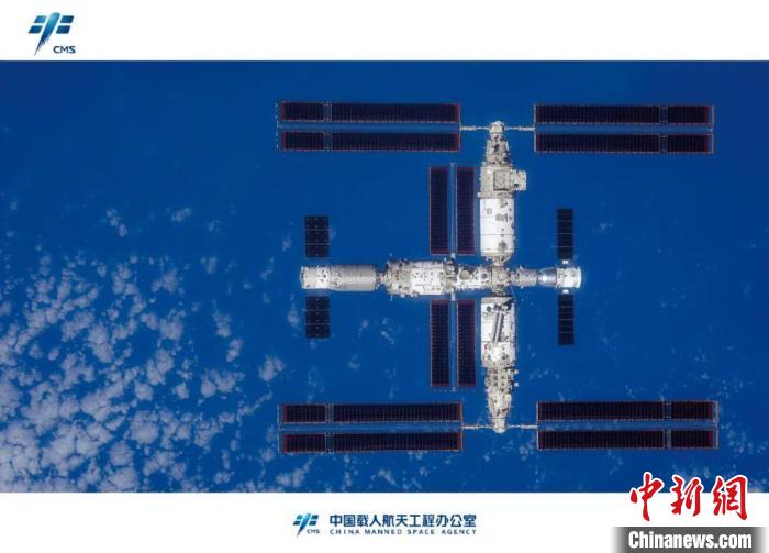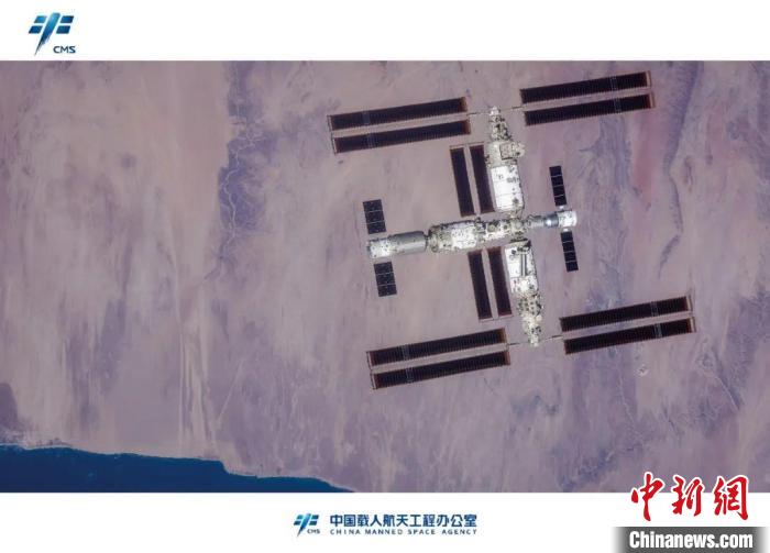 神舟十六號航天員拍攝的中國空間站組合體全景圖像。(中國載人航天工程辦公室供圖)