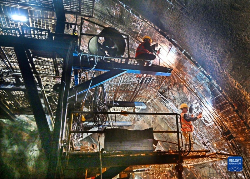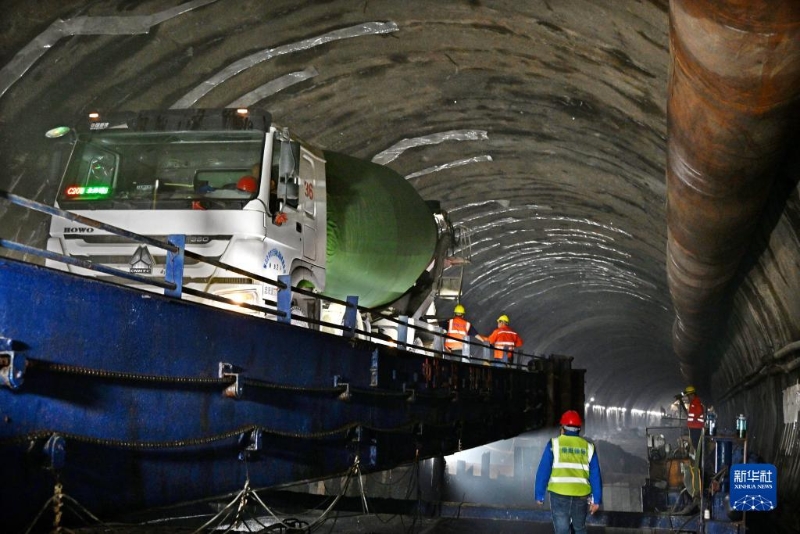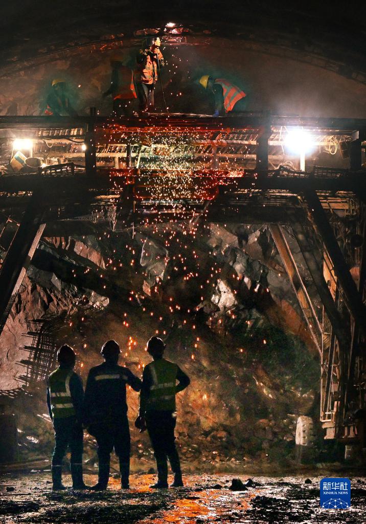 11月27日,中鐵二局建設(shè)者在膠州灣第二海底隧道內(nèi)施工作業(yè)。