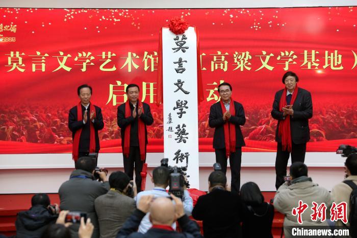 中新網(wǎng)山東高密11月28日電 (記者 沙見龍)莫言文學藝術(shù)館(紅高粱文學基地)11月28日在中國著名作家、諾貝爾文學獎獲得者莫言的家鄉(xiāng)山東高密開館。該館收藏了莫言的手稿資料、文學作品等各種文獻珍品,匯集文學、藝術(shù)、民間文藝等多種形式,集展覽展示、創(chuàng)作交流、學術(shù)研討等功能于一體,將有力推動文學與鄉(xiāng)村建設(shè)更好地結(jié)合。