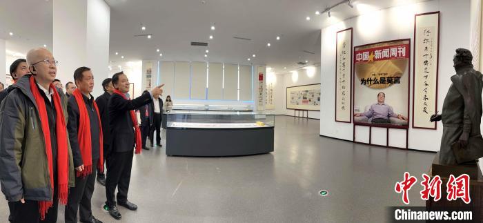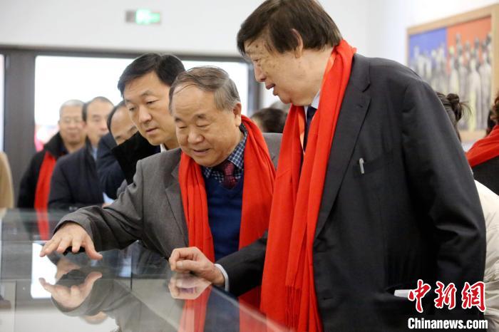 啟動儀式結(jié)束后,馮驥才(右一)、莫言(右二)等與會嘉賓參觀莫言文學藝術(shù)館。記者 沙見龍 攝