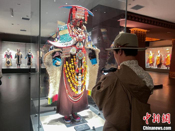 圖為一位文旅達人拍攝青海藏文化博物院展出的藏族服飾。馬銘言 攝
