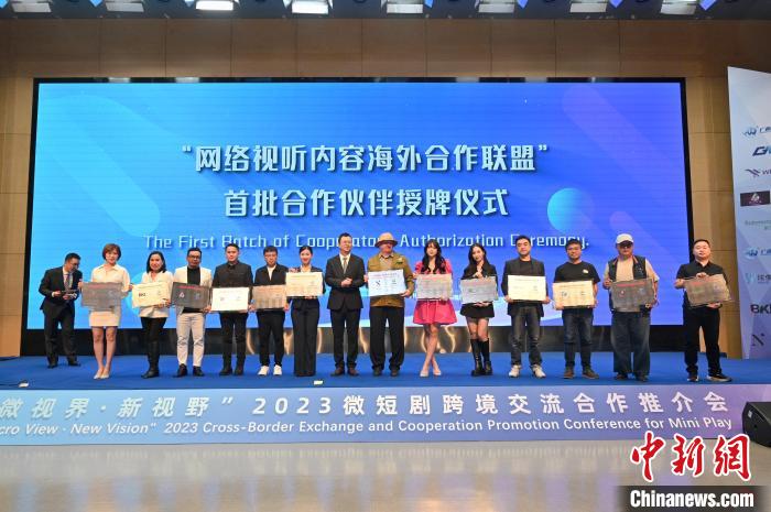 “網(wǎng)絡(luò)視聽內(nèi)容海外合作聯(lián)盟”首批合作伙伴授牌儀式。主辦方供圖