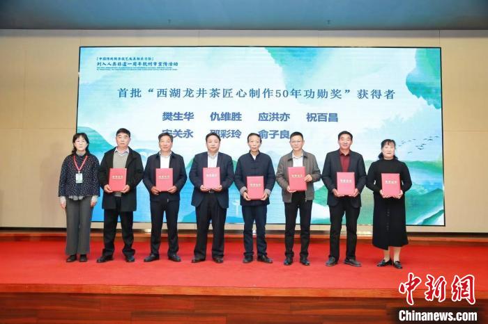 首批“西湖龍井茶匠心制茶50年功勛獎(jiǎng)”獲得者表彰現(xiàn)場。中國茶葉博物館 供圖