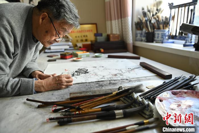 11月23日,甘肅省政府文史館資深館員、國家一級美術(shù)師楊國光近日接受中新社、中新網(wǎng)記者專訪。記者 李亞龍 攝