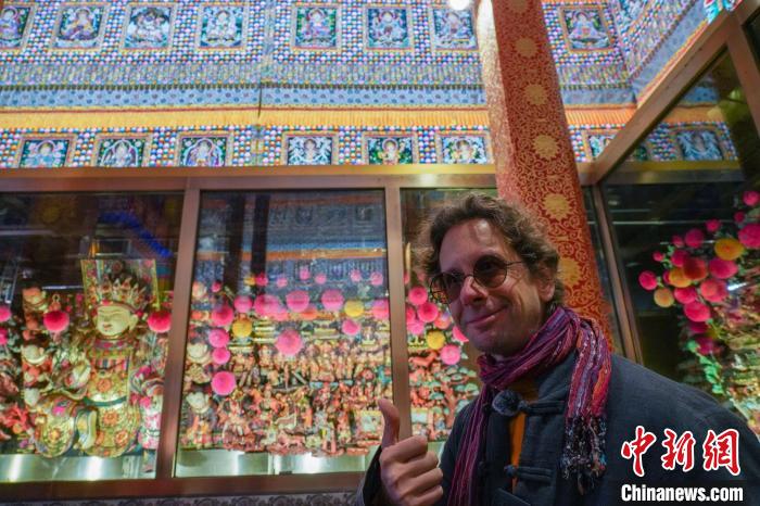 圖為外國文旅達人點贊青海塔爾寺“藝術三絕”。馬銘言 攝